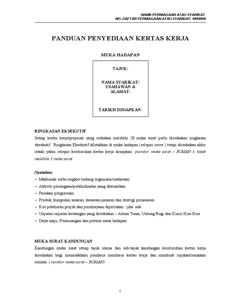 Contoh Kertas Kerja Perniagaan